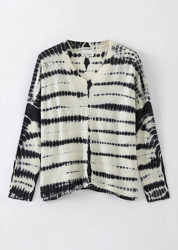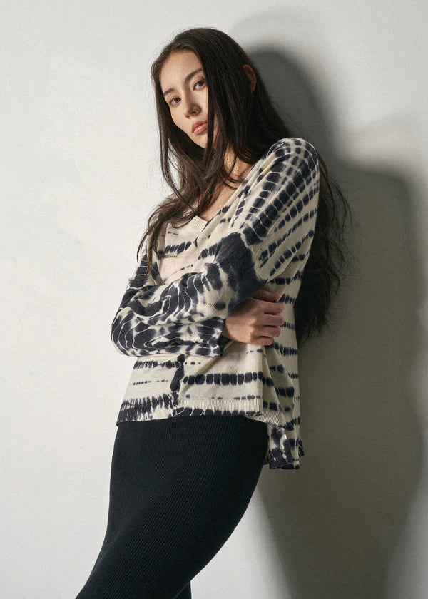 Crafted from an ultra-lightweight blend of Merino Wool and sustainably sourced Cashmere, this elevated V-neck sweater is hand-dyed in our exclusive pattern—making each piece one of a kind.