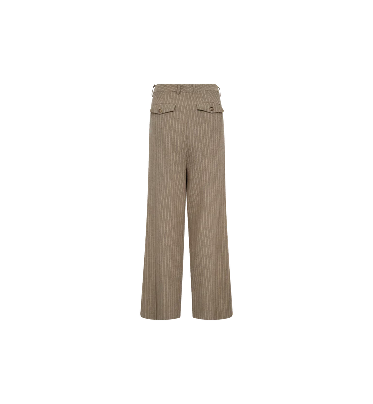Elevate your wardrobe with these flawlessly tailored straight-fit pants. Crafted from a soft woven blend with a hint of wool, they offer comfort and style for autumn. Featuring side and flap pockets, they strike the perfect balance between practicality and sophistication. Pair them with the matching pinstripe blazer for a sleek and modern power look.