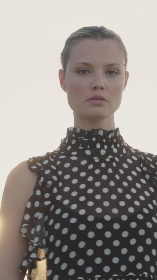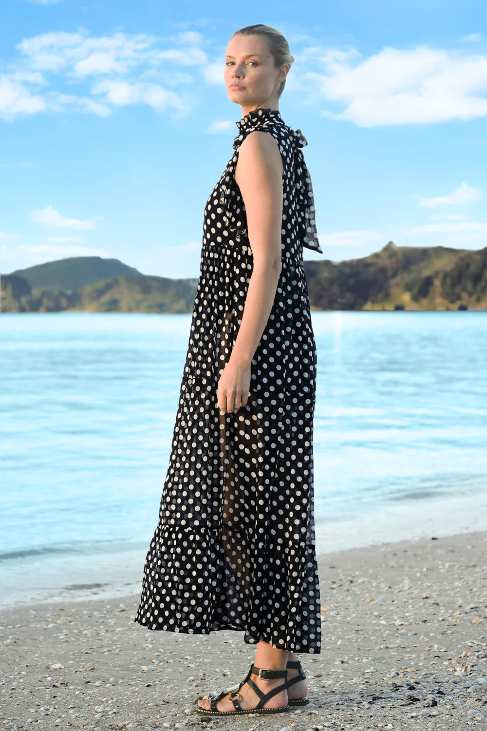 Introducing spots to kick off the summer season with the bold and vivacious ‘Feeling Dotty’ fabrication. A contemporary interpretation of a much-loved timeless print, the ‘You Tier Me up’ dress is this seasons must-have. Featuring a gathered neckline with tie back closure, this sleeveless dress details ruffle sleeves, a gathered waist and tiered skirt. An easy throw-on piece that will you see through easy Saturday lunches, warm evening dinners and your nine to five.